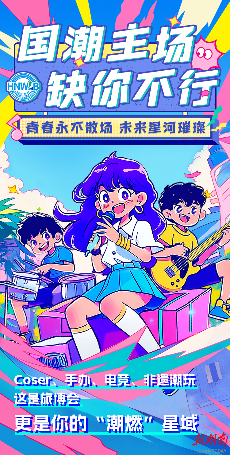 2025湖南旅博会国潮动漫游戏展区,融合湖湘IP、电竞、Coser、非遗潮玩,打造了一个巨大的“国潮风暴眼”。