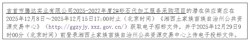 原链接:[公开招标]吉首市腾达实业有限公司2025-2027年度2#砂石代加工服务采购项目[正在下载]