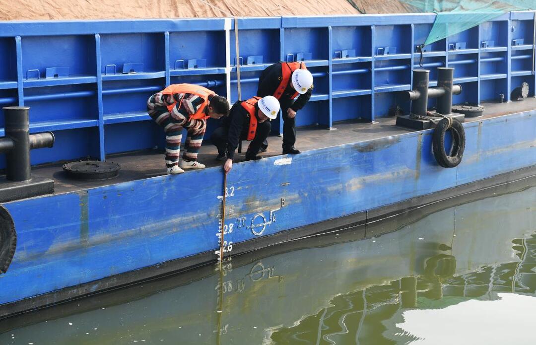 长沙市交通综合执法支队保持高压态势,将船舶吃水线监管作为枯水期执法重点,对每一艘过闸船舶的吃水情况进行细致测量,督促“超吃水”船舶严格落实减载要求,从源头杜绝超载搁浅隐患。