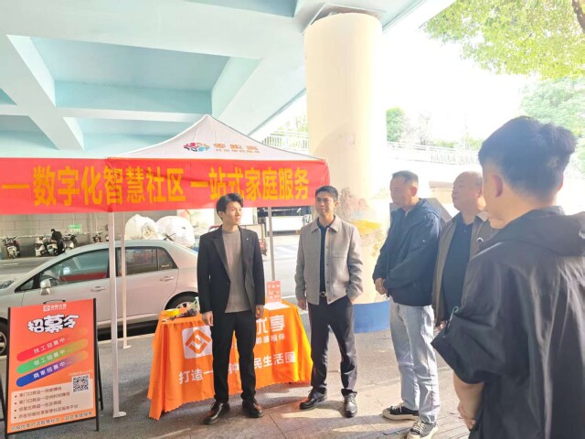 (郑加文(左一)到社区推广“邻服优选”平台。郑加文供图)