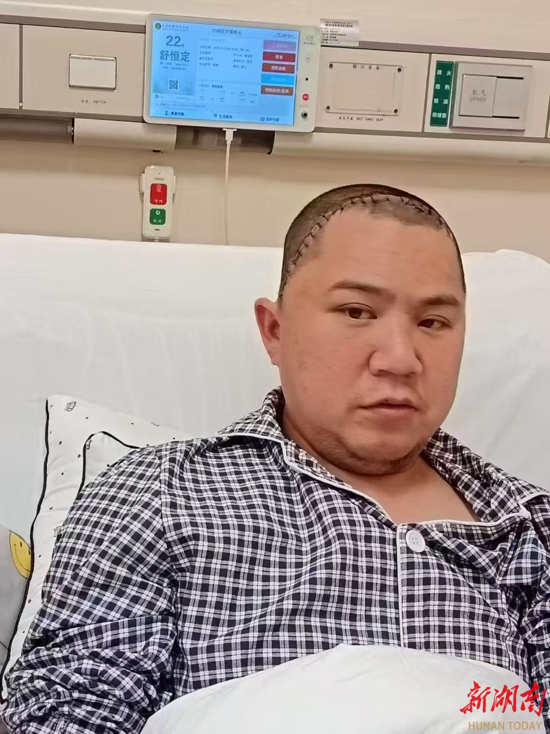 2024年农历十二月初八,丈夫突然晕倒,不省人事,被诊断为脑溢血。勉强过完春节,2025年2月20日,吴舒莲又陪丈夫到长沙湘雅医院接受开颅颅咽管肿瘤切除手术。原以为术后能迎来转机,没想到因脑垂体和下丘脑功能受损,丈夫出现了严重的内分泌失调,糖尿病、电解质紊乱、中枢性尿崩症等并发症接踵而至,在城步、长沙反复住院六次,好几次都被推到了死亡边缘。