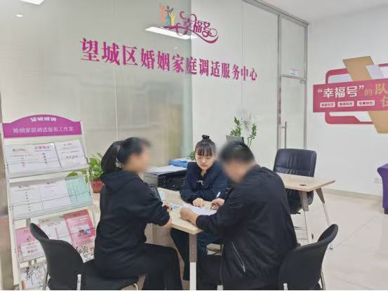 望城区婚调家庭调适服务中心专职人员进行调解。