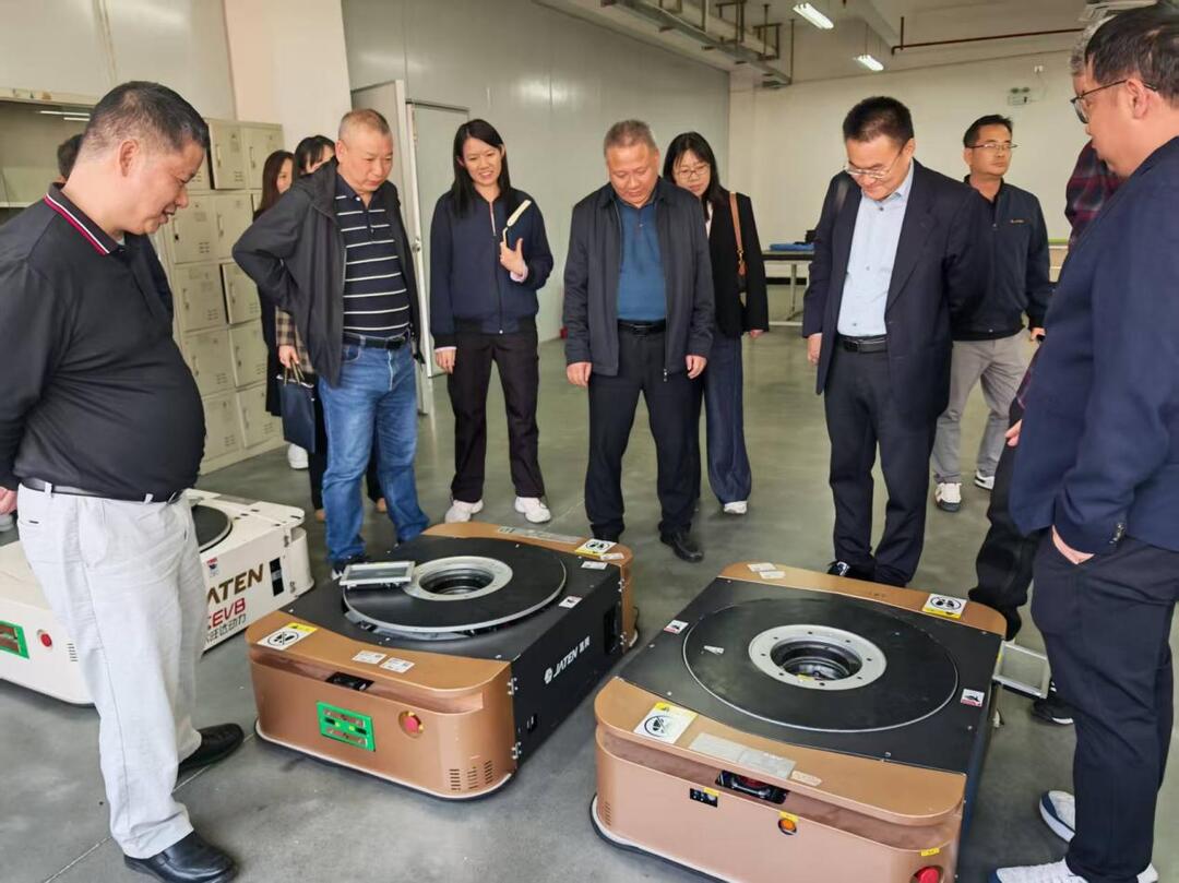 (在嘉腾机器人有限公司实地参观AGV机器人产品展示)