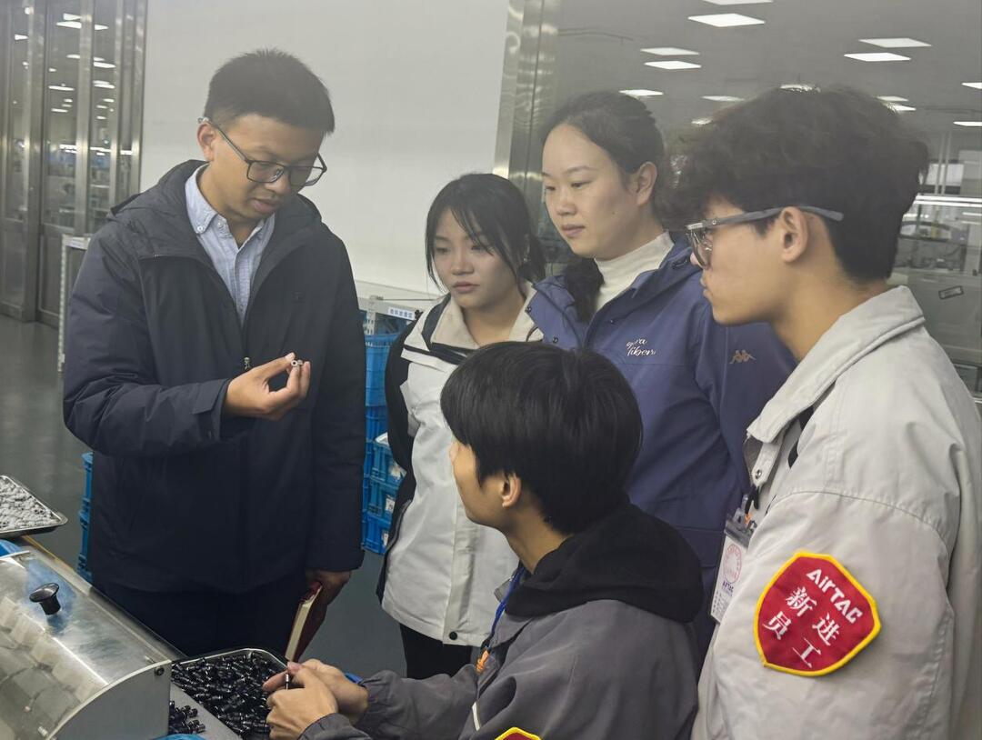 在浙江省,巡查组走访亚德客国际集团二厂、宁波欣新电器科技有限公司、安吉热威电热科技有限公司三家行业骨干企业。巡察组深入车间产线与工作工位,全程观摩实习生操作规范与工艺细节,直观考察课堂理论向实践技能的转化成效。在岗实习生展现出的专业素养与务实作风获得企业高度认可,多数学生已适应工作节奏并能独立完成核心任务,部分学生成为产线骨干后备力量,实现“以学促产、以产炼技”的实习目标。