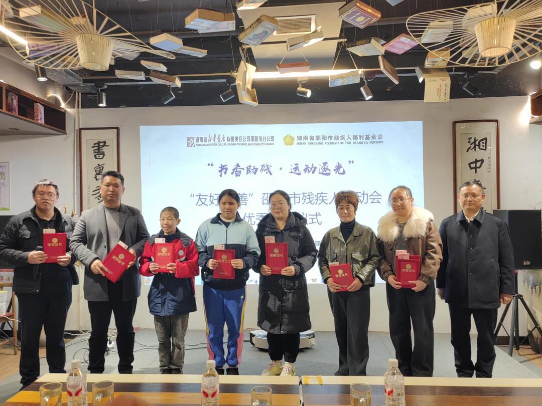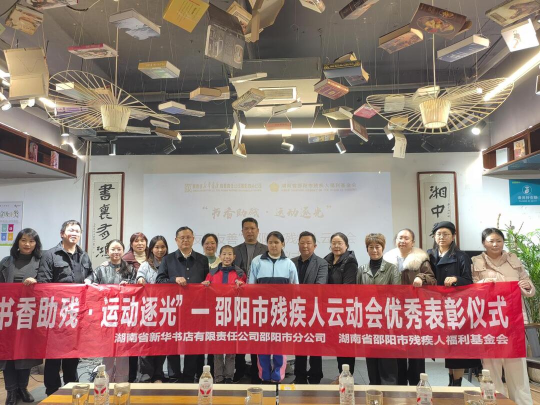 12月8日下午,湖南省邵阳市残疾人福利基金会在邵阳市新华书店书里书外四楼举办“书香助残·运动逐光”——“友好友善”邵阳市残疾人云动会优秀表彰仪式。新华书店代表、优秀指导老师、云动会参赛选手代表、志愿者等参与了此次表彰。