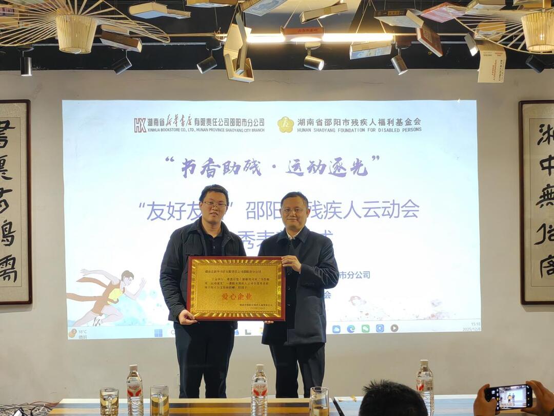 为感谢新华书店对残疾人公益事业的持续助力,邵阳市残疾人福利基金会现场向其授予“爱心企业”荣誉牌匾。