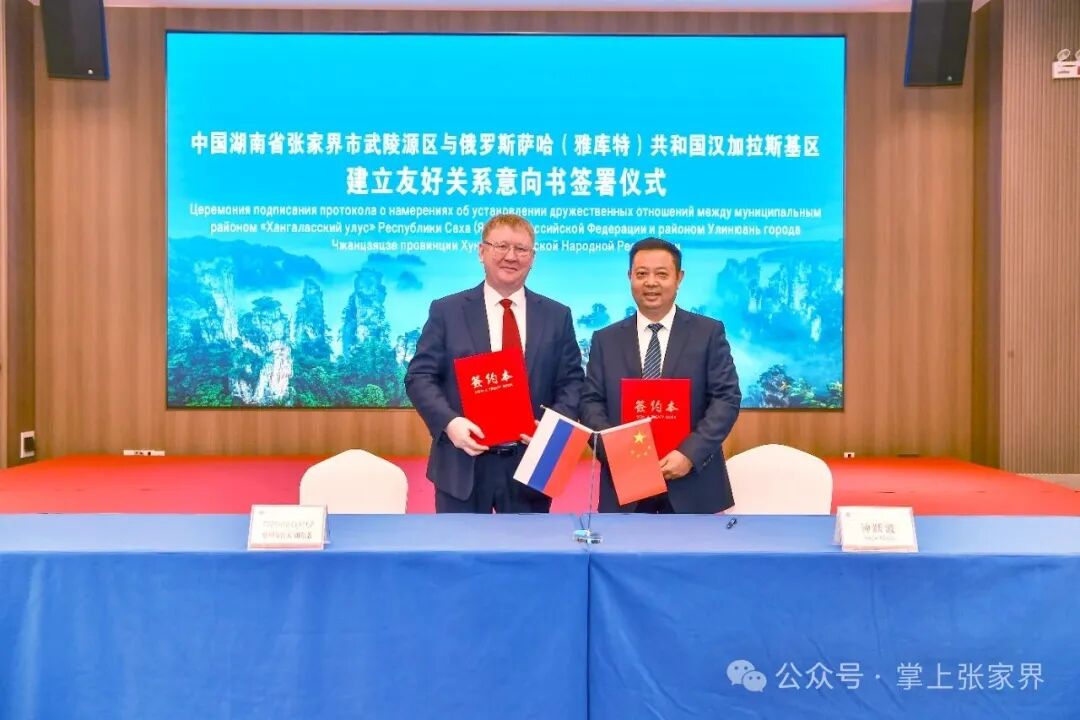 湖南日报·新湖南客户端12月10日讯(通讯员 邵颖 龚科)12月9日,张家界市武陵源区与俄罗斯萨哈(雅库特)共和国汉加拉斯基区建立友好关系意向书签署仪式暨张家界武陵源风景名胜区和国家森林公园管理局与联邦国家预算机构勒拿河石林国家公园签订合作协议仪式举行。