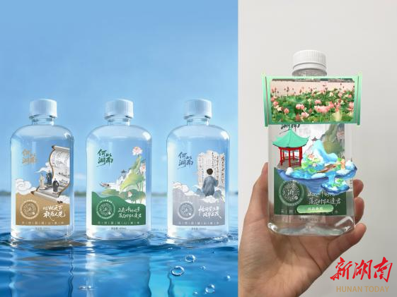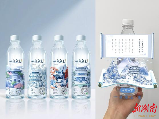 游客扫描瓶身二维码,即可触发AR互动体验:在“一方水土长沙”中,岳麓书院的庄重、爱晚亭的诗意、杜甫江阁的开阔、开福寺的禅意,随四季更迭(春樱、夏荷、秋枫、冬雪)以精美数字动画的形式跃然眼前。而“何以湖南”系列,则让荷花随风轻摆、流水潺潺有声,甚至邀来古人于虚拟河畔吟诗唱和。这款产品以平价、刚需为切入点,实现了“喝水即逛景”,让每一位游客都能轻松将一段动态的湖湘风情“揣兜带走”,成为移动的文化名片与沉浸式导览媒介。