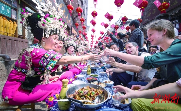 民族文化是民族团结的“精神纽带”。土家族打溜子走过20多个国家的舞台,“苗族赶秋”被列入联合国教科文组织人类非物质文化遗产代表作名录;“魅力湘西沉浸式非遗体验游”成为湖南省唯一入选的全国非遗特色旅游线路。湘西的文化,不再是博物馆里的静态展品,而是走出去的“名片”,是融在生活里的“基因”。