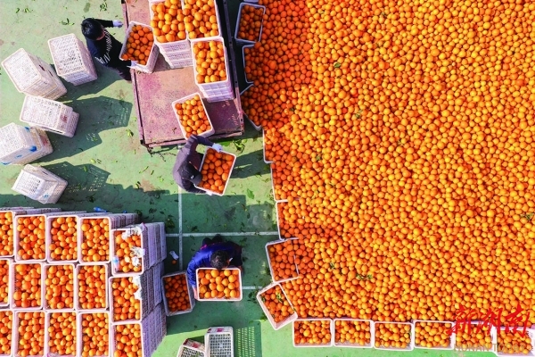 12月7日,龙山县里耶镇比耳村,果农在装运里耶脐橙。连日天气晴朗,正是采摘好时机。曾祥辉 摄