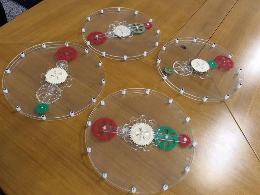 差动齿轮是一类比较复杂的齿轮系统,只讲理论学生很难真正理解。为此,高云峰特意亲手做了一个指南车。车上面原本是一个木人,他将其改装为“马拉公鸡”的装置,具有相同的指南功能。运转演示过程中,同学们看到“无论车身如何转向,车上公鸡始终指向南方”,更直观地理解了差动齿轮如何抵消车身转动的影响。