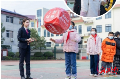 课程结束后,操场变身法治乐园:“法治大转盘”转出知识火花,“反欺凌飞行棋”教会自我保护,掷骰答题区传来阵阵欢笑声。在这场思辨与游戏交融的体验中,法律从条文走向生活,在孩子心中刻下温暖而清晰的印记。