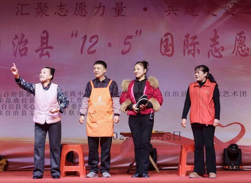 12月5日晚,在第40个国际志愿者日来临之际,一场以“汇聚志愿力量 共建美好社会”为主题的文艺演出在城步苗族自治县县城儒林广场举行,用爱心与行动书写新时代志愿服务的苗乡答卷。中共城步县委宣传部、中共城步县委社会工作部、城步文学艺术界联合会等部门单位相关负责人、县内广大义工志愿者、各界嘉宾和群众近1000人参加活动。