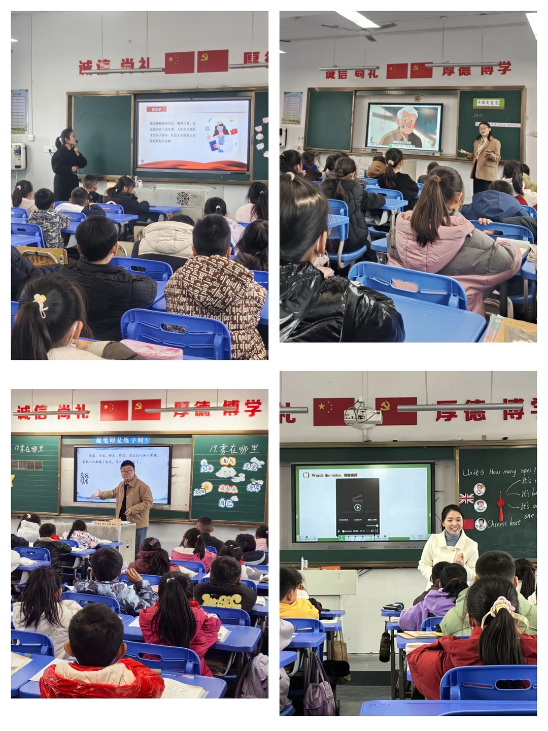 课堂展示环节,东风小学4位优秀教师带来语文、数学、英语、道法四节精品教研课。王耀东老师的《雾在哪里》以情境化教学点燃学生兴趣,何静老师的《羊圈变变变》将数学知识与生活实践深度融合,周可老师的英语课《Unit4 How many ropes?》通过互动游戏提升课堂实效,王周宇老师的《我有一个梦想》引导学生树立远大理想。四节课例紧扣核心素养,展现了先进的教学理念与精湛的教学技艺,让听课教师深受启发。
