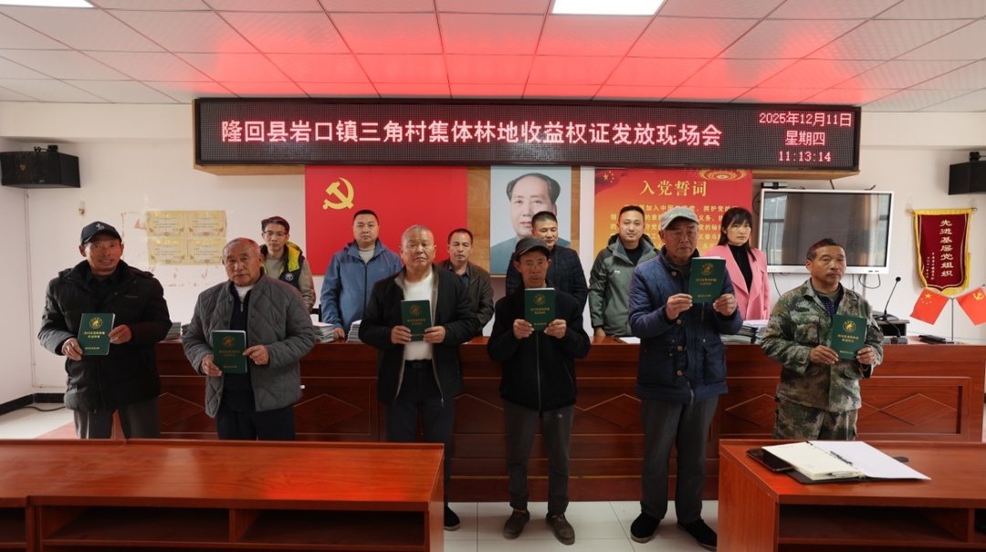 12月11日,隆回县岩口镇三角村村委会前人头攒动,一场关乎生态与民生的改革实践在此落地生根——全县集体林权收益证首发仪式举行。