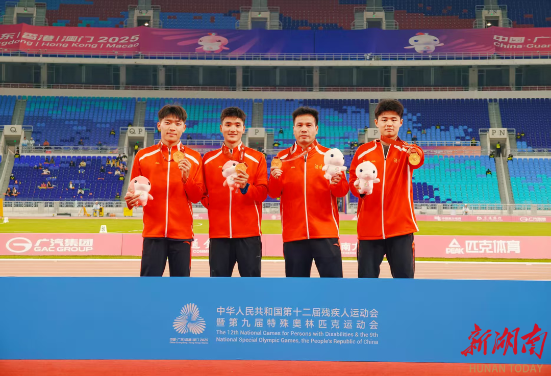 12月10日,永州运动员黄睿华不仅在男子200米T44级摘金,更携手队友,在男子4×100米接力T42-47/T61-64级决赛中以44.05秒的成绩再添一金。
