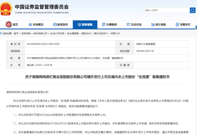 10月28日,鸣鸣很忙再次递表,拟登陆香港主板。12月11日,公司拿到了中国证监会的备案函。从2016年长沙起家,到如今冲击资本市场,这家成立不到10年的消费类企业,已成为拥有1.6万余家门店的新型零售巨头,2025年上半年商品交易总额超441亿元。