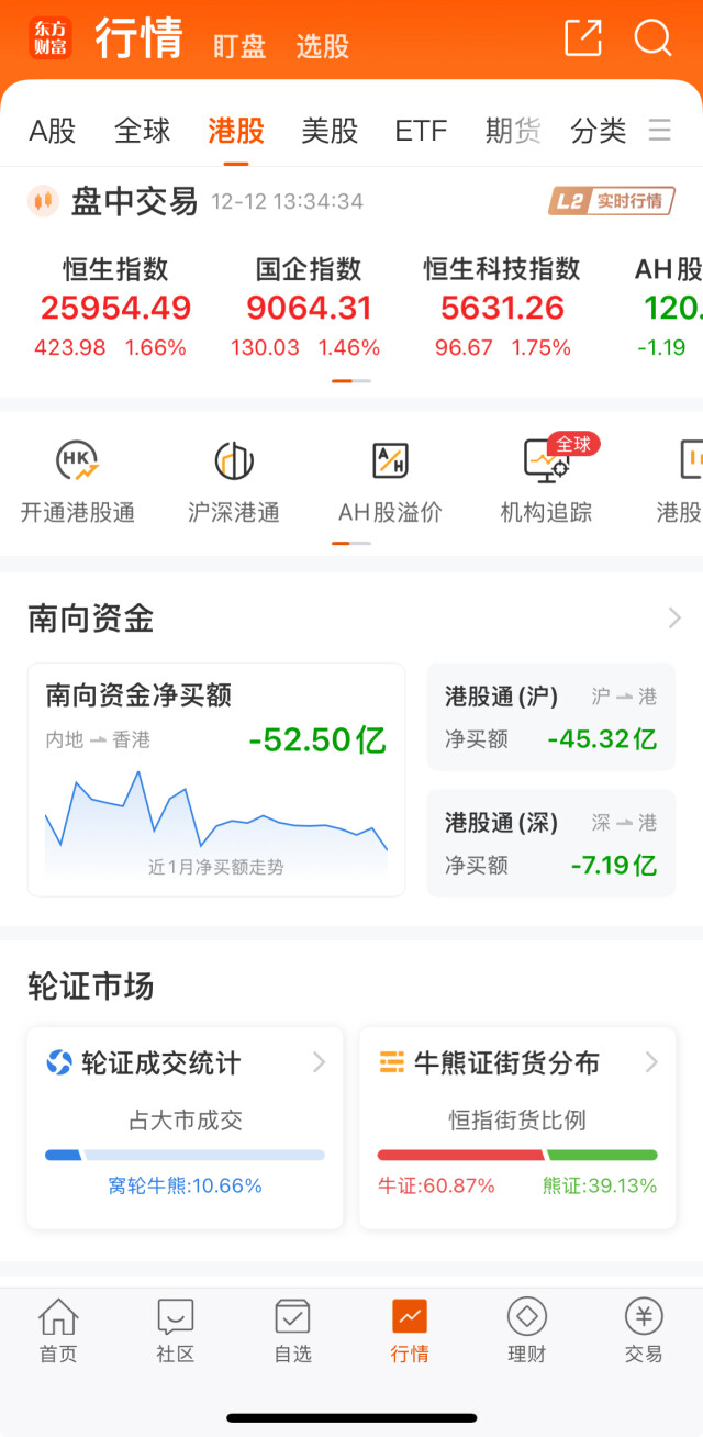 (港股12月12日指数情况)