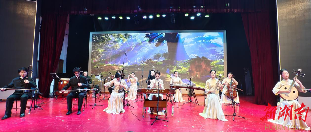 音乐会由湖南工业大学青年教工与优秀学子组成的“神农雅韵”民族室内乐团担纲主力。乐团以琵琶、二胡、古筝、笙、阮、扬琴等传统乐器为核心,凭借精湛的技艺与默契的配合,在有限的编制中创造出丰富的音响层次与深邃的文化意境。