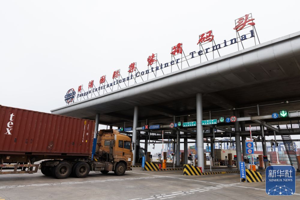 ↑ 12月11日在洋浦国际集装箱码头新建集装箱集中查验场拍摄的新树立的指示图标。