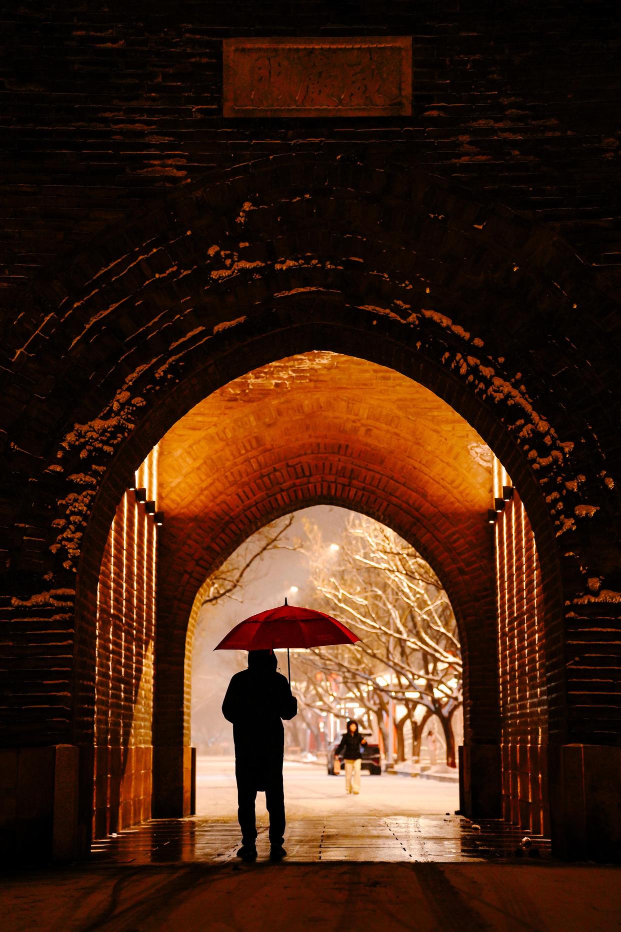 12月12日,北京初雪,夜晚,卢沟桥被点亮,银装素裹更添古韵与浪漫!