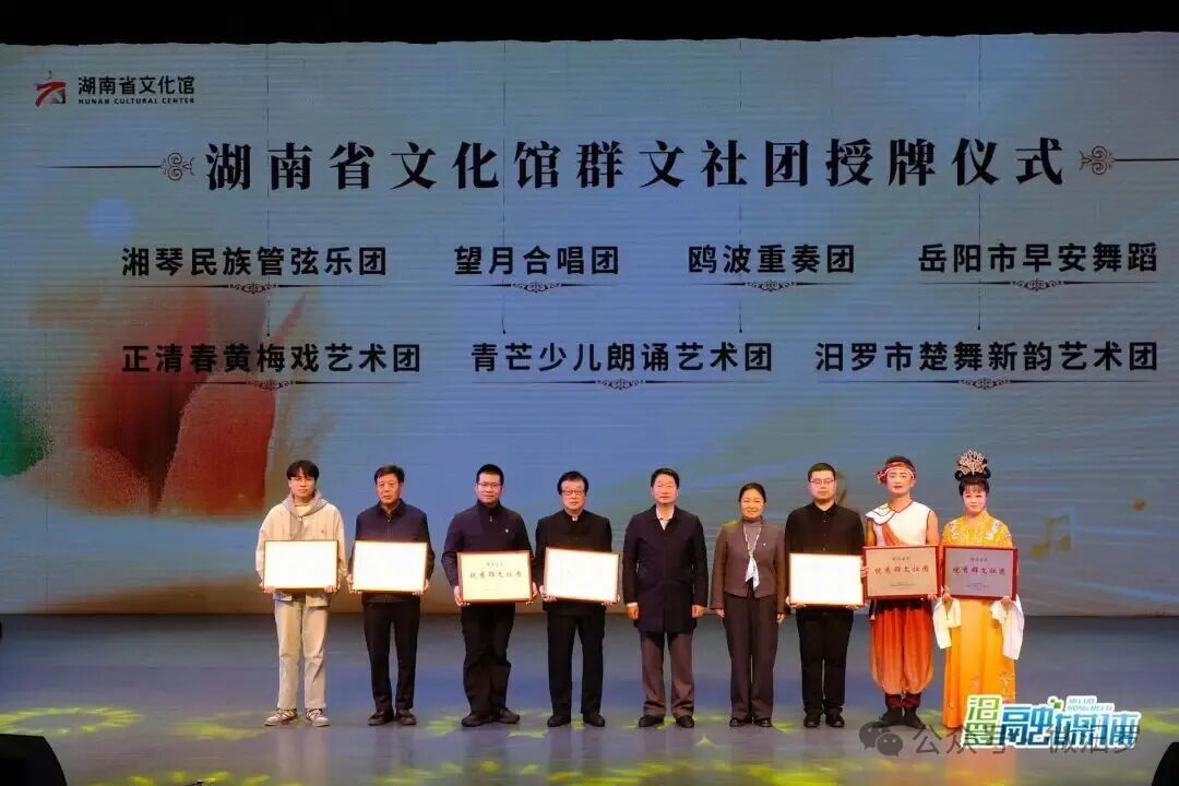 活动现场还举行了优秀群文社团授牌仪式,汨罗市楚舞新韵艺术团荣获表彰。