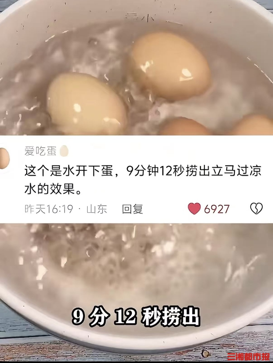 第一条评论中,他明确标注了具体操作方法:“这是水开下蛋9分12秒,捞出立马过凉水的效果”;紧接着,第二条评论补充了极具说服力的专业背书:“别怀疑,我一天吃40个水煮蛋,连吃5年,每一秒我都知道啥火候”。简洁直白的表述没有多余修饰,瞬间点燃了评论区的互动热情,成为这场流量爆发的“导火索”。