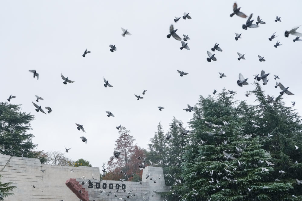 ↑12月13日,南京大屠杀死难者国家公祭仪式现场放飞和平鸽。