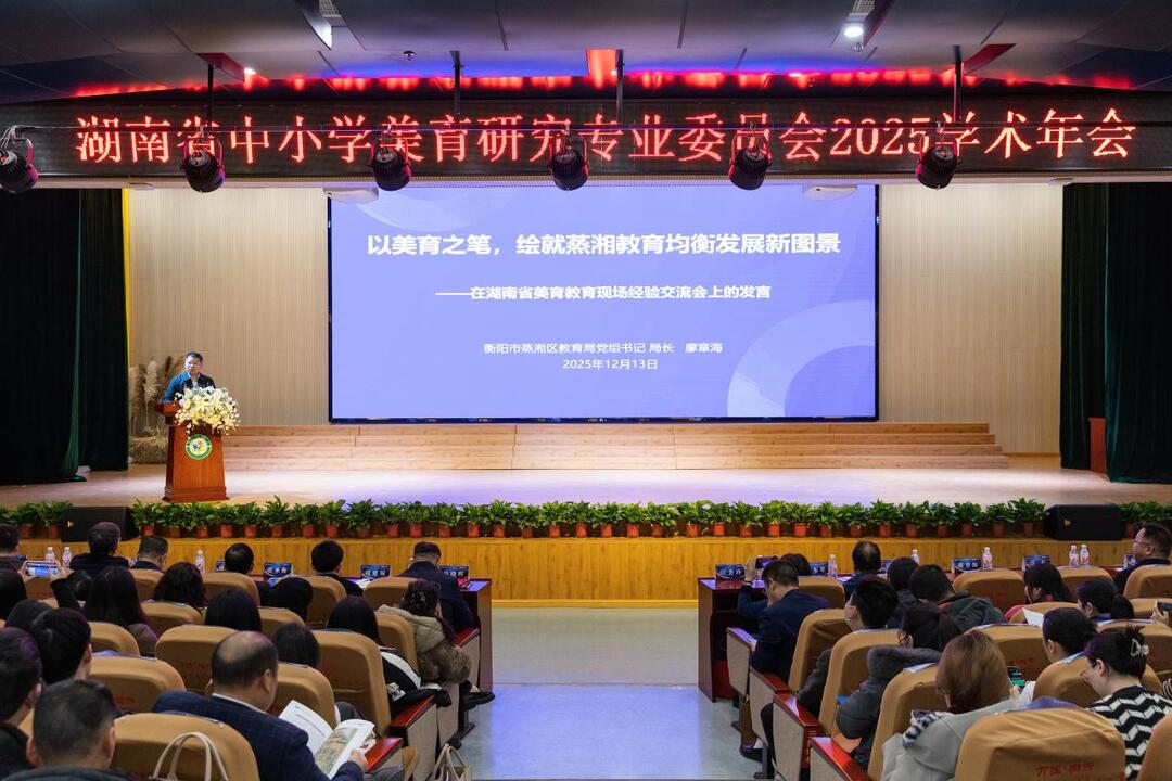 科教新报·新湖南客户端讯(通讯员 曾慧 黄倩莹)冬日衡州,美育飘香。12月13日,由湖南省教育学会指导,湖南省教育学会中小学美育研究专业委员会主办,蒸湘区教育局协办、蒸湘区大立实验小学承办的2025年“学科美育与学校文化”学术年会在衡阳市蒸湘区举行。来自全省各地的美育专家、中小学校长及骨干教师等200余人齐聚一堂,共话美育创新路径,共探学校文化建设新方向。