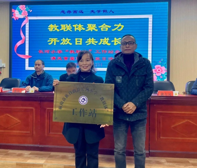 在县委办副主仼舒采方热情洋溢的话语中,活动进入授牌与启动仪式环节。在热烈的掌声中,“教联体”工作站牌匾缓缓揭幕,象征合作正式启航。