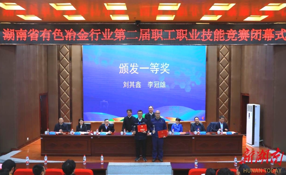 湖南日报·新湖南客户端12月14日讯(记者 张咪 通讯员 李庭)12月14日,湖南省有色冶金行业第二届职工职业技能竞赛在湖南有色金属职业技术学院圆满闭幕。竞赛设重冶火法冶炼工、电气设备点验员两个赛项,共吸引行业内众多技能人才同台竞技。经过激烈角逐,两个赛项各评选出9名获奖者,其中一等奖1名、二等奖3名、三等奖5名。矿产集团湖南白银的刘其鑫荣获重冶火法冶炼工赛项一等奖,湖南钢铁集团湘潭钢铁的李冠雄斩获电气设备点验员赛项一等奖。