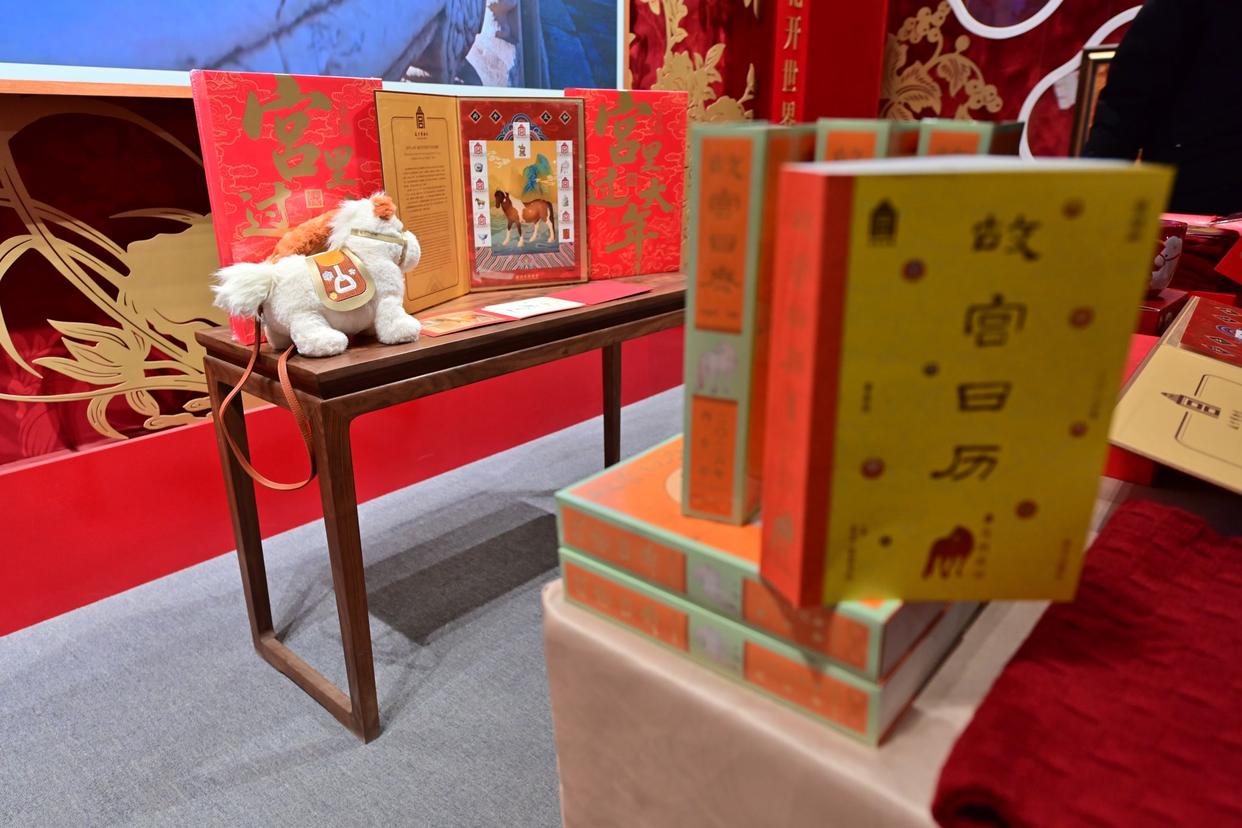 20余款故宫年货摆满两张桌子。生肖贺岁邮票、各个版本的故宫日历和故宫福筒等经典款产品依旧吸引观众目光。观众龚女士说:“样式虽然是老搭配,但上面的内容每年都有新惊喜,即便是‘过季’了,也值得收藏。我很喜欢今年的年画,源自明代的《柳荫双骏轴》,柳叶桃枝下的两匹白色骏马非常有生机。手机扫码还能在福字上获取动画效果,看到骏马从紫禁城奔腾而出。”