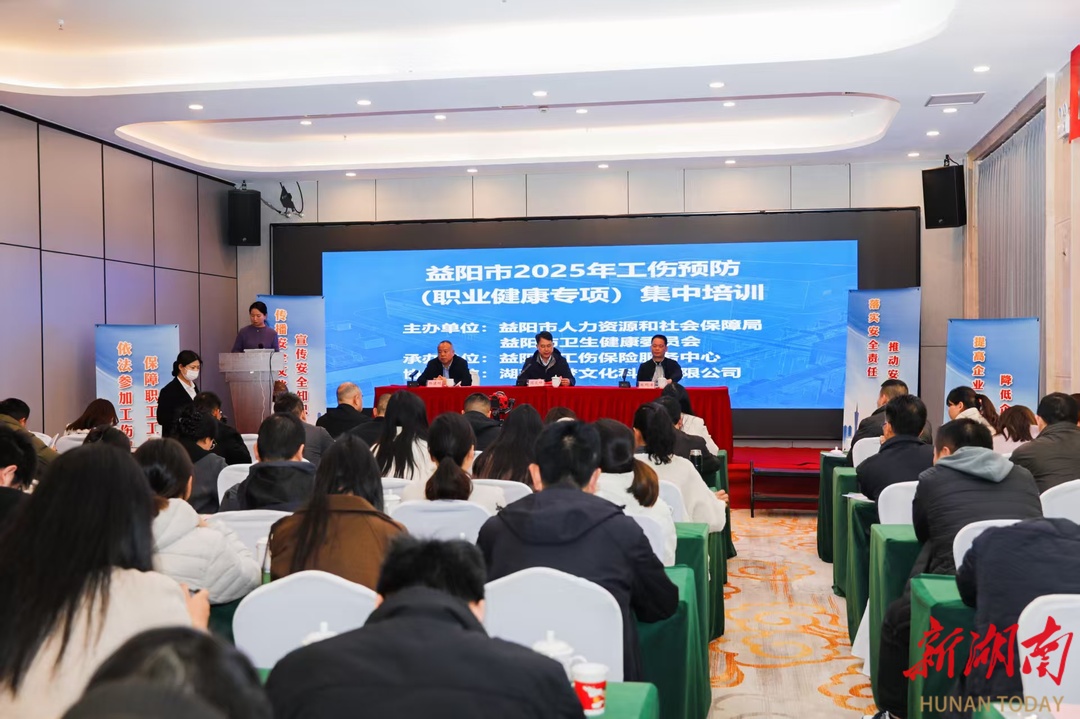 新湖南客户端12月14日讯(通讯员 陈洪 颜子洋)为深入贯彻落实“健康中国”战略,切实保障劳动者职业健康权益,12月10日至11日,由益阳市人力资源和社会保障局、市卫生健康委员会联合主办,市工伤保险服务中心承办的2025年工伤预防(职业健康专项)能力提升培训班,在益阳市凯兴花园酒店成功举办。本次培训以提升职业健康管理水平为核心目标,为全市高质量发展筑牢劳动安全屏障。
