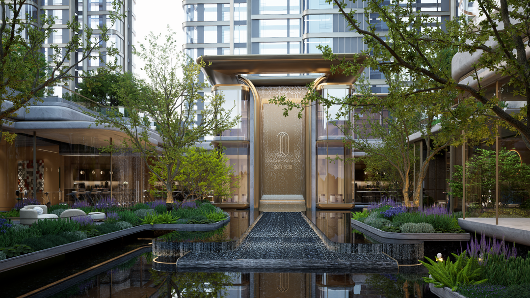 将自然秘境搬进城市生活,是嘉信·央玺对人居需求的深刻洞察。项目汲取“湘江奔涌”的磅礴灵感,约1000㎡下沉水院以11.8米高差的跌水瀑布,复刻江河与岸的壮阔。一侧的趣动水院中浮动水景、林间吧台、珍贵绿植,为业主提供亲近自然的生态空间。