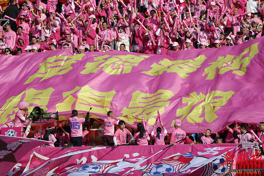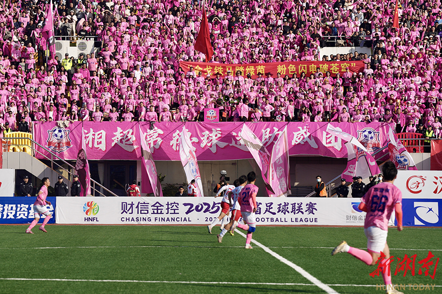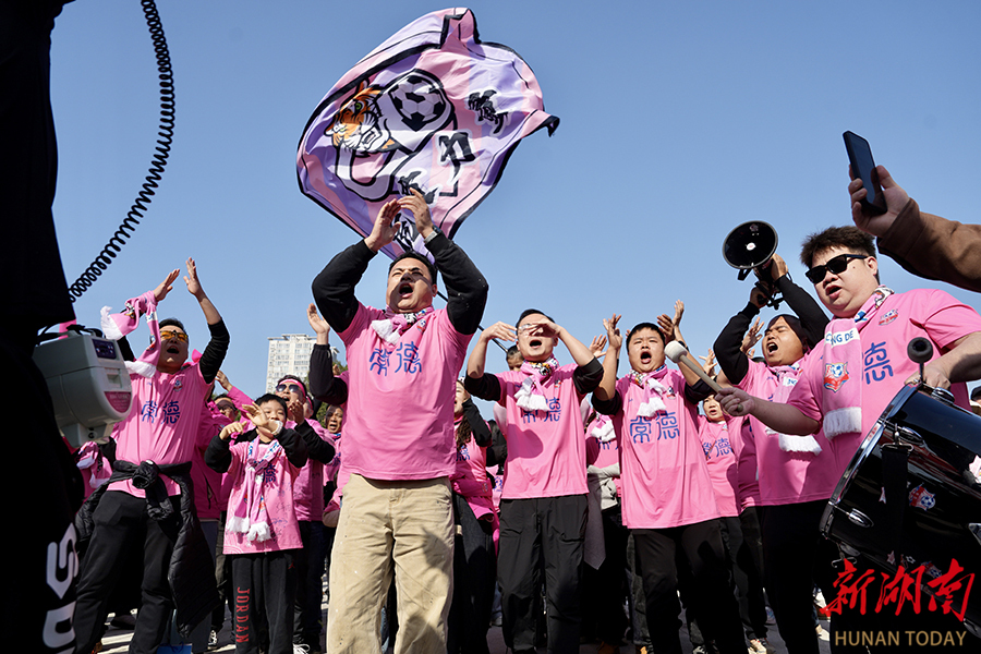 12月14日下午,衡阳队球迷在赛前加油。当天,2025湘超联赛1/4决赛火热上演,常德队(粉)主场对阵衡阳队。经过紧张刺激的鏖战,终场哨响,常德队1:0战胜衡阳队,率先挺进四强! 周文晋 摄(湖南图片库)