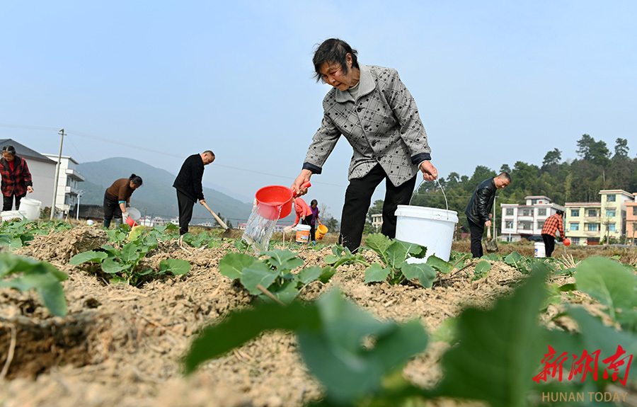 12月14日,洞口县花园镇黄金村,农民在对油菜进行施肥、锄草作业。眼下,正是冬季农作物管护关键时节,农户们抢抓农时进行施肥除草等作业,为来年丰收打下基础。 滕治中 摄(湖南图片库)