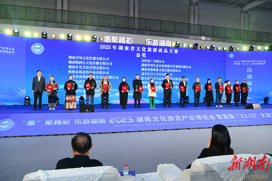 12月14日,2025湖南文化旅游产业博览会暨首届“12.12”文旅消费购物节圆满落幕。本届展会集展览、交易、体验于一体,集中展示“文旅+科技”融合成果。闭幕式上集中发布了展会交易数据,并对湖南省旅游商品大赛、2025湖南首届名店名厨健康湘菜厨艺大赛等系列活动的获奖单位与个人进行了表彰。 湖南日报全媒体记者 田超 胡雪怡 摄影报道