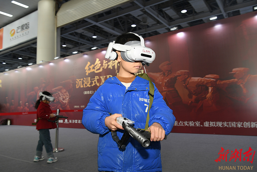 12月14日,小朋友在浸式体验AI游戏。当天,2025湖南文化旅游产业博览会暨首届“12.12”文旅消费购物节圆满落幕。本届展会集展览、交易、体验于一体,集中展示“文旅+科技”融合成果。闭幕式上集中发布了展会交易数据,并对湖南省旅游商品大赛、2025湖南首届名店名厨健康湘菜厨艺大赛等系列活动的获奖单位与个人进行了表彰。 湖南日报全媒体记者 田超 胡雪怡 摄影报道