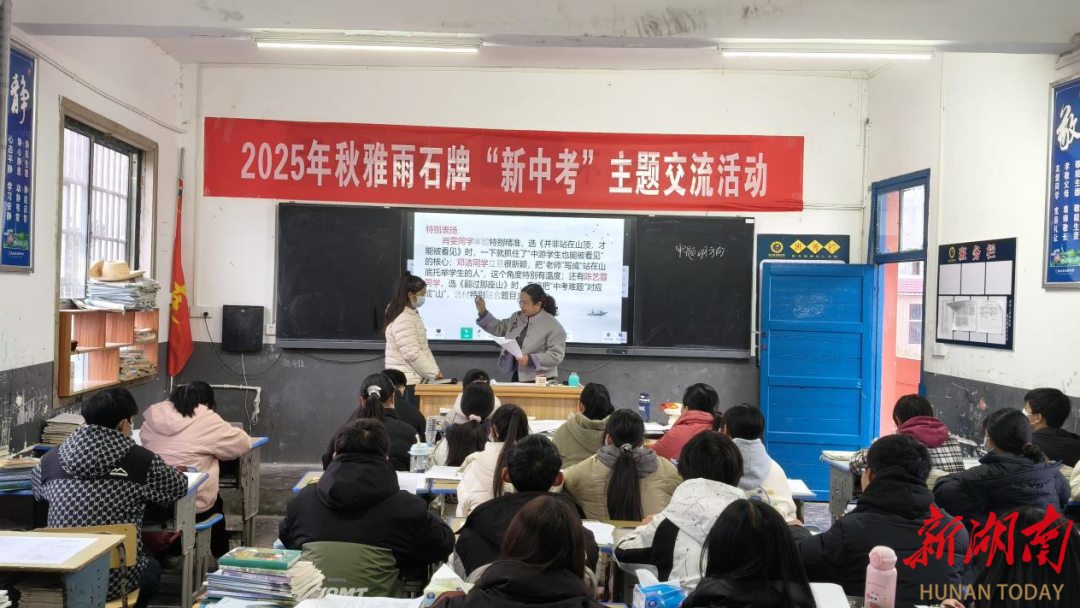 新湖南客户端12月15日讯(通讯员 刘冠佳)12月4日至5日,长沙市雅礼雨花中学与龙山县石牌镇初级中学联合举办“聚焦新中考”交流活动。雅礼雨花中学校长刘新贵带队,三位骨干教师执教示范课,为石牌中学师生呈现了新中考探讨教学的实践范例。