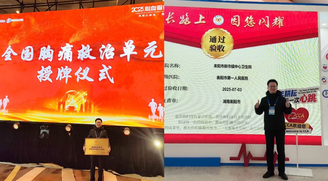 大众卫生报·新湖南客户端12月15日讯(通讯员 石亚丽 邹勇)近日,衡阳市第一人民医院新市分院(耒阳市新市镇中心卫生院)正式通过国家胸痛救治单元验收并授牌,成为继珠晖区苗圃街道社区卫生服务中心之后,该院紧密型医联体内第二家获此认证的基层医疗机构,标志着由市第一人民医院牵头构建的区域胸痛协同救治网络持续完善,基层胸痛救治能力实现跨越式提升,为衡阳地区群众筑起了更快捷、更规范的“心”健康防护屏障。