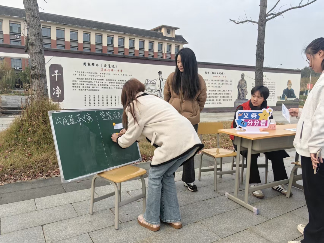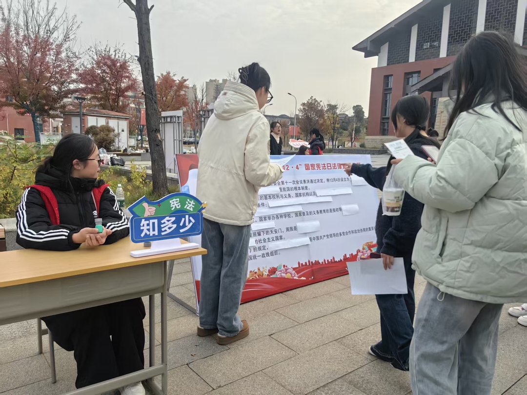 趣味知识问答环节,题目涵盖宪法基本原则、公民基本权利与义务、国家机构等多个方面,同学们积极抢答、相互切磋,在答题过程中巩固宪法知识。