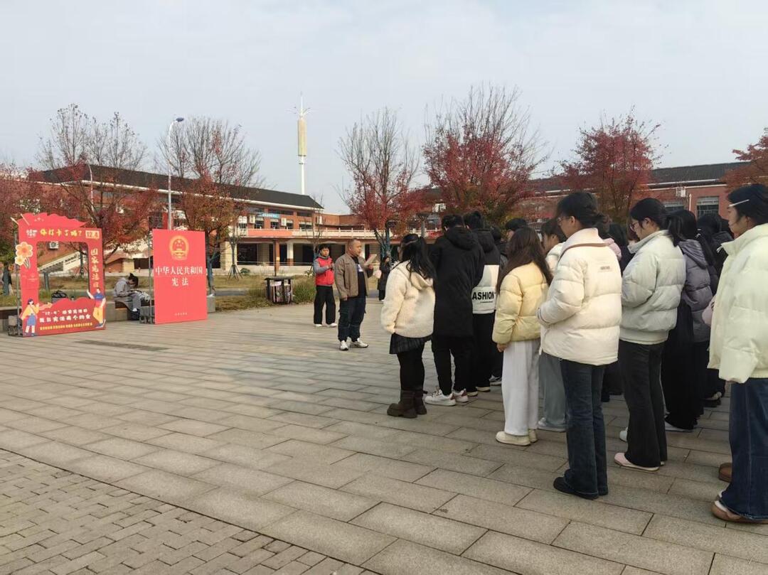 在我国第十二个国家宪法日当天,永州师范高等专科学校艺体实训中心前广场人头攒动、气氛热烈,学校2025年“宪法宣传周”系列活动之校园宪法日主题游园会如期举行。活动以趣味互动的形式传播宪法知识、弘扬法治精神,让广大师生在轻松愉悦的氛围中感受宪法魅力,掀起了学习宪法、尊崇宪法的热潮。