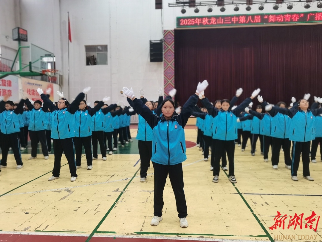 新湖南客户端12月15日讯(通讯员 刘玲 刘海丽)为增强学生体质、弘扬集体主义精神,龙山县第三中学第八届于2025年12月12日下午举行第八届校园广播体操比赛。七年24个班级,近1500名学生以整齐划一的动作、昂扬向上的姿态,共同演绎了一场青春与活力的盛宴。