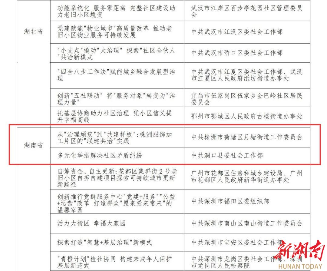 湖南日报·新湖南客户端12月15日讯(全媒体记者 王振亚)12月14日,在人民日报社新媒体大厦举办的第三届城乡社区高质量发展论坛上,2025城乡社区高质量发展典型案例正式发布。株洲市荷塘区月塘街道工委申报的《从“治理顽疾”到“共建样板”:株洲服饰加工片区的“联建共治”实践》和洞口县委社会工作部申报的《多元化举措解决社区矛盾纠纷》成功入选。