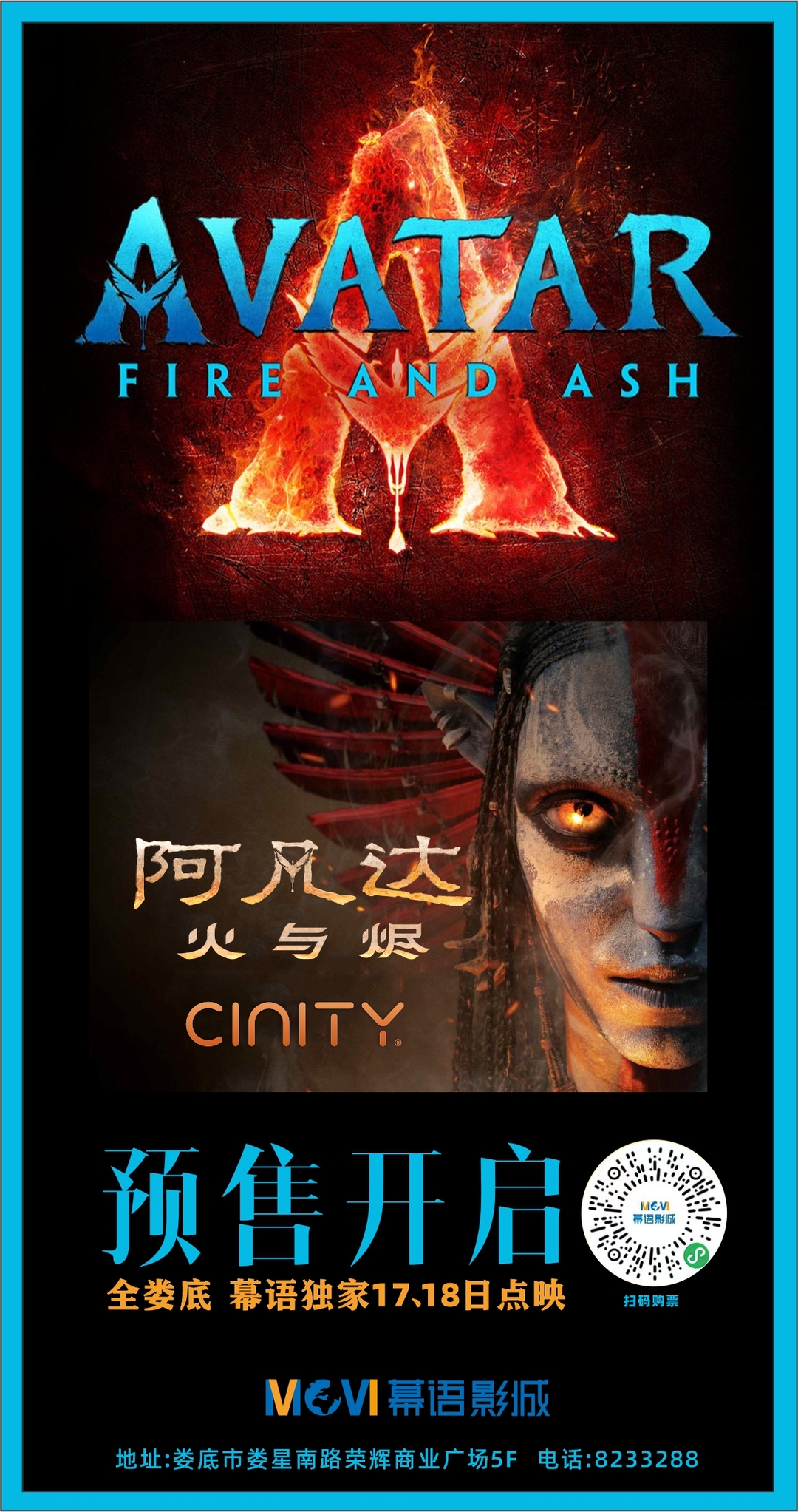 备受期待的科幻巨制《阿凡达3》将于2025年12月19日登陆国内院线。继12月8日中国首映礼选定CINITY系统后,导演詹姆斯·卡梅隆再次将本片超前点映资格独家授予该放映系统。娄底地区唯一配备CINITY高端影厅的幕语影城(CINITY店),已正式获得授权,将于12月17日至18日开启独家超前点映。