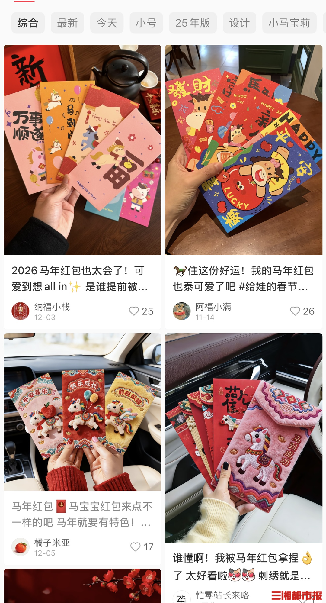 “朋友一句‘怎么现在就有马年红包卖了’,让我嗅到了商机。”陈宇说,意识到提前开售的市场空白后,她立即前往义乌采购货,精选融入国潮设计、卡通元素的春联和红包,开启线上销售。