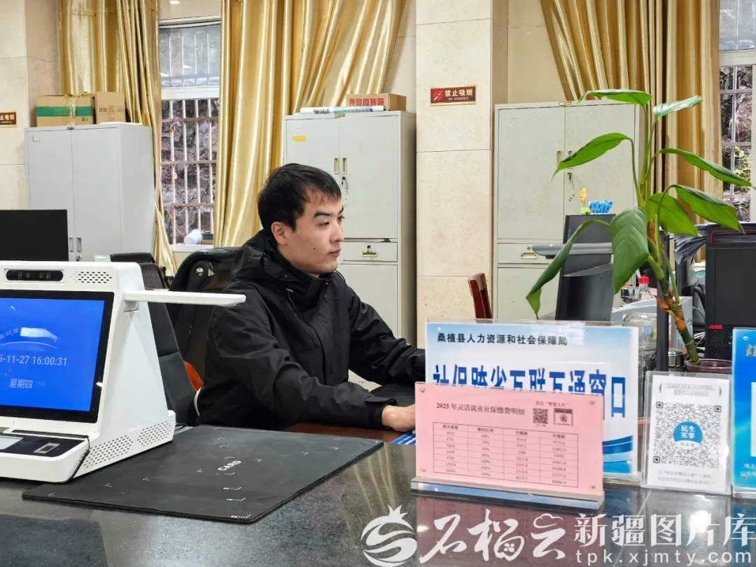 (乃比江·萨拉木在桑植县人力资源和社会保障局社保服务中心服务窗口工作。通讯员 供)
