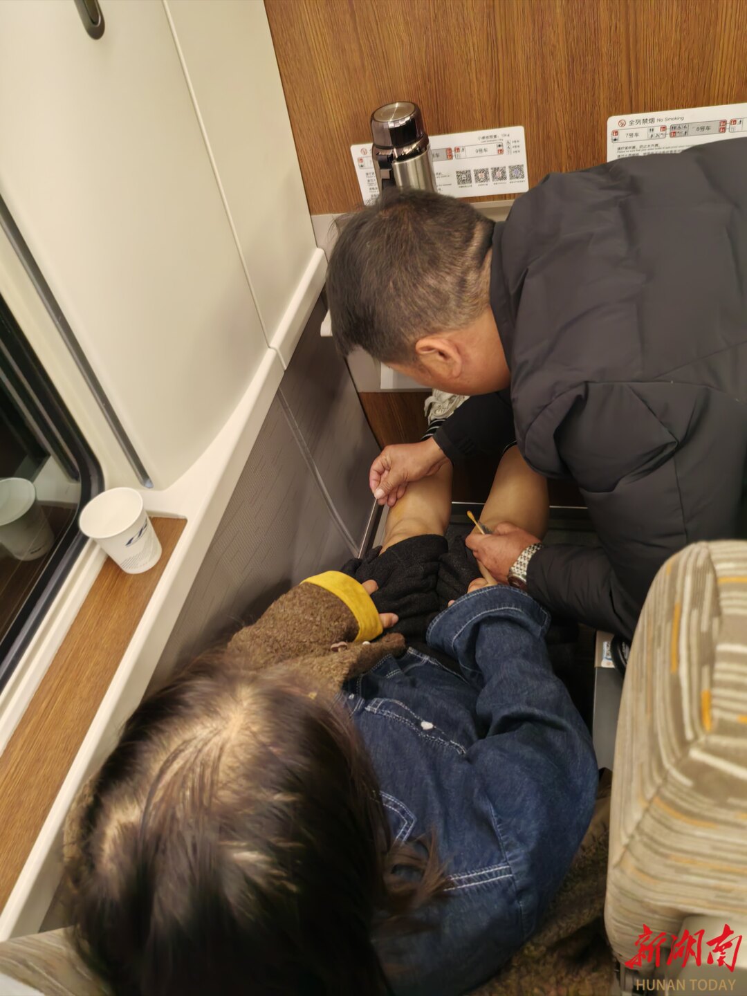 新湖南客户端12月15日讯(通讯员 刘旭 蒋波)12月15日,由吉首开往长沙的G5681次高铁驶过凤凰至怀化路段时,8号车厢一名女乘客突发不适,车厢内随即响起急促的广播寻医的呼声。