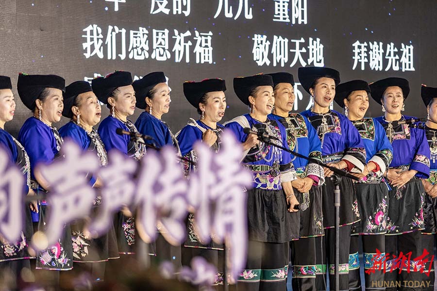 12月14日晚,吉首市人民广场,苗歌队在演唱苗歌。当天,该市举办“苗歌之韵 声声传情”2025湘西苗族民歌非遗展演,来自湘黔两地的15支苗歌队以原生态演唱展现民族文化魅力,促进非物质文化遗产活态传承。 彭璟 摄(湖南图片库)