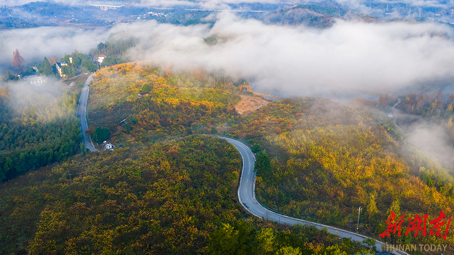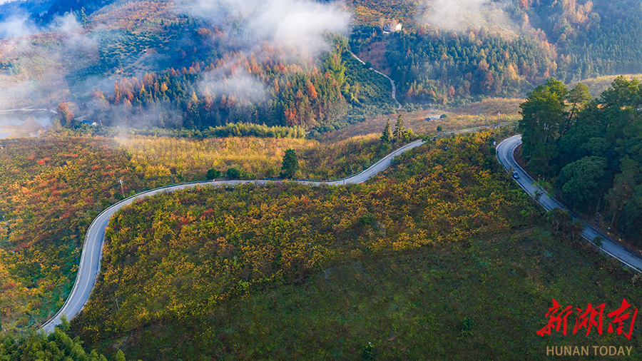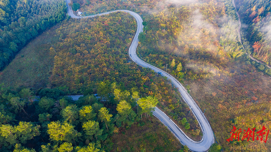 12月14日,靖州苗族侗族自治县,农村公路如玉带般蜿蜒于云雾青山间,通往排牙山国家森林公园。近年来,当地以“四好农村路”建设为抓手,将交通基础设施与乡村旅游深度融合,助力乡村振兴。 田文国 摄(湖南图片库)